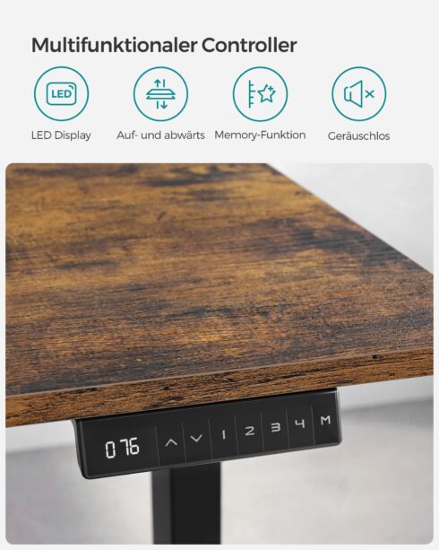 Regulējama augstuma elektriskais galds 120 x 60 cm Vintage